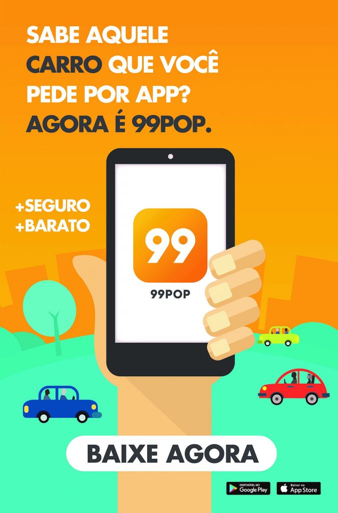 99POP, o aplicativo de carros particulares da 99, que já atuava em grandes capitais, como Rio de Janeiro e São Paulo, começou por Salvador sua trajetória no Nordeste. A campanha de lançamento na capital baiana foi criada pela Ideia 3 e destaca os diferenciais do serviço – maior economia e segurança – nos mais diversos meios, com destaque para o rádio, mobiliário urbano, outdoors e redes sociais. Com o tema “Sabe aquele app de carro particular? Agora é 99POP”, a campanha posiciona o serviço como a nova referência para o setor num tom leve e descontraído.