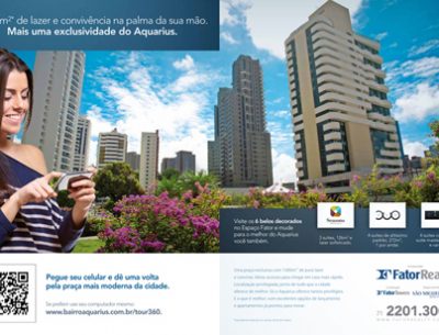 Anúncio com QR Code convida para um tour virtual na praça Aquarius